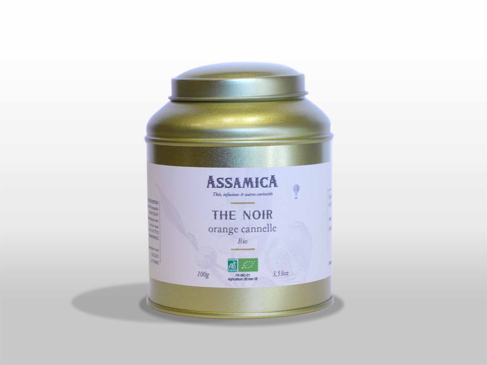 Ingrédients : thé noir d’inde du Kerala bio (Camellia sinensis (L.) Kuntze), cannelle tuyau bio (Cinnamomum verum J. Presl), cardamome bio (Elettaria cardamomum (L.) Mato), orange zeste bio (Citrus sinensis (L.) Osbeck), citron zeste bio (Citrus limon (L.) Burm. f.)